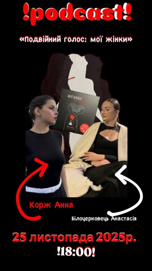 25 листопада 2025 року відбулося спільне засідання літературного гуртка "Література і війна" під керівництвом проф. Штейнбука. Цього разу засідання відбувалося у форматі подкасту, спікерками якого виступили студентка 1-го курсу Анна Корж та студентка 2-го курсу Анастасія Білоцерковець, і було присвячено розгляду книги Юлії Ілюхи "Мої жінки". І хоча це була перша така спроба, однак відео з подкасту тільки за перші пів доби у ФБ набрало більше, ніж пів тисячі переглядів! Тож сподіваємося, що гуртківці на цьому не зупиняться!